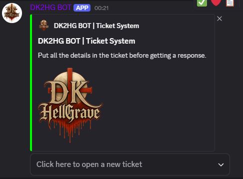Once opened, you’ll see the #ticket・support channel with a panel like the one in the image.